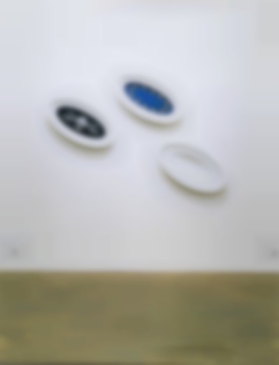 • Platino, *Sans titre  (Extern 37.)* et *Sans titre  (Extern 36.)* (1989), vue d’installation,*Le Magasin L’École L’Exposition*, Magasin-CNAC, du 1e octobre au 26 november 1989. Photo : Quentin Bertoux